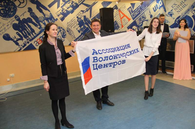 На Церемонии награждения Владимир Евгеньевич от лица Ассоциация волонтерских центров России вручил проректору по учебной и воспитательной работе, Оксане Олеговне Мартыненко флаг АВЦ и поблагодарил за теплый прием на Дальневосточной земле!